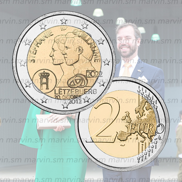 Moneta da 2 euro dedicata al 10º Anniversario di Matrimonio della Coppia Ereditaria Granducale, UNC.