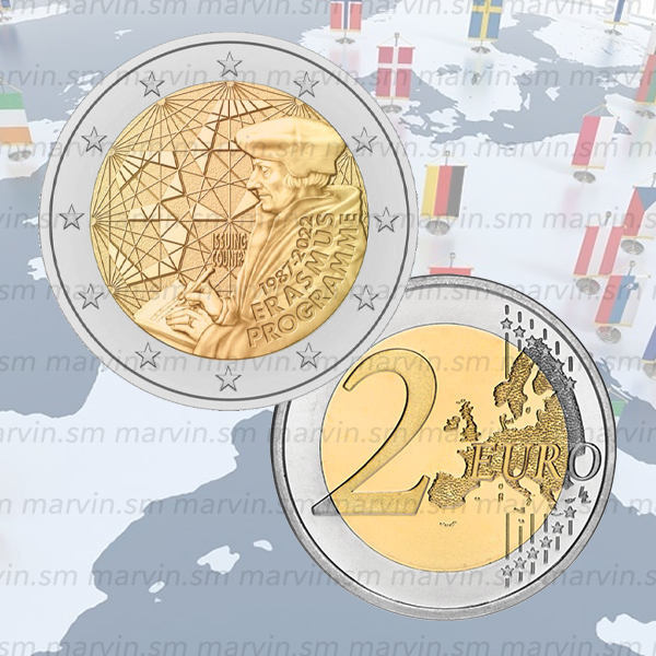 Moneta commemorativa da 2 euro dedicata al 35° anniversario della fondazione del Programma Erasmus, UNC.