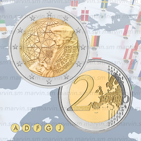 Moneta commemorativa da 2 euro dedicata al 35° anniversario della fondazione del Programma Erasmus, UNC.