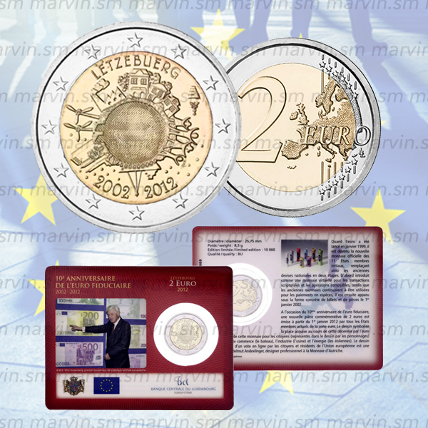 2 euro - Anniversario Euro - Lussemburgo - 2012 - Coincard - FDC