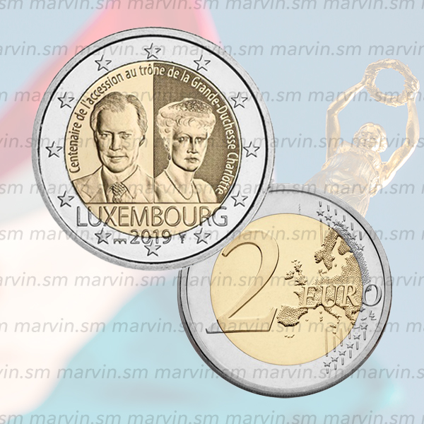 Moneta 2 euro dedicata al 100° anniversario dell'ascesa al trono della Granduchessa Charlotte, UNC.