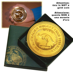 Questo fac-simile è veramente identico all'originale chilogrammo australiano. Sul retro si trova un panno morbido di velluto per usare questa moneta come ferma-carte.