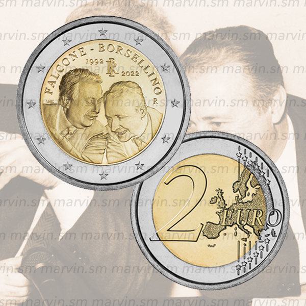 Moneta commemorativa da 2 euro dedicata al 30° anniversario della scomparsa di Giovanni Falcone e Paolo Borsellino, UNC.