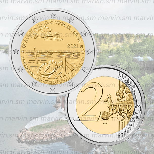 Moneta da 2 euro dedicata al 100° anniversario dell'autonomia delle Isole Aland, UNC.