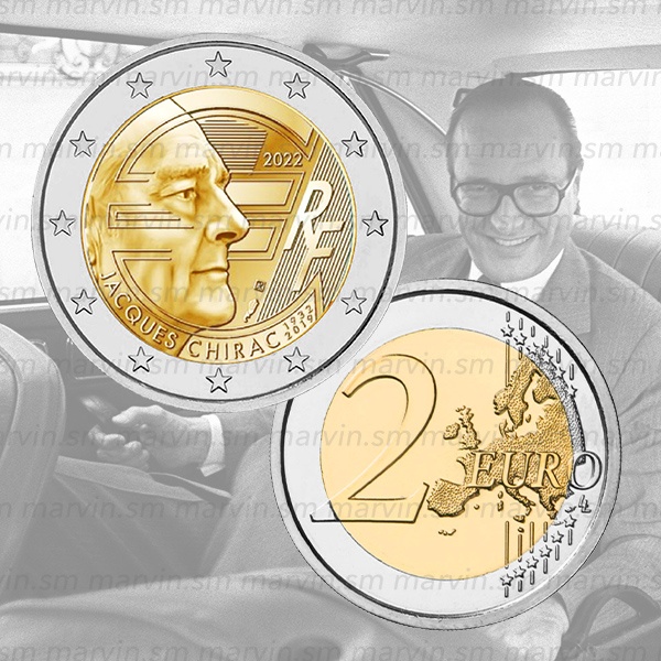 Moneta 2 euro dedicata al 20° anniversario dell'introduzione dell'Euro da parte di Jacques Chirac, UNC.