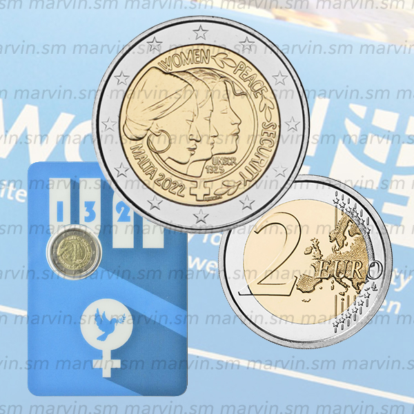 Moneta commemorativa da 2 euro in Coincard dedicata al Consiglio di Sicurezza delle Nazioni Unite per la risoluzione sulla pace e la sicurezza delle donne, FDC.