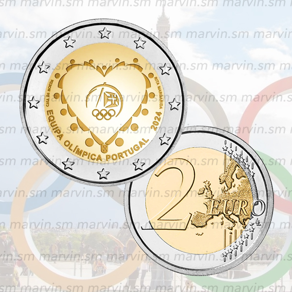 Moneta commemorativa da 2 euro dedicata alla Squadra Olimpica portoghese che parteciperà alle Olimpiadi del 2024, UNC.