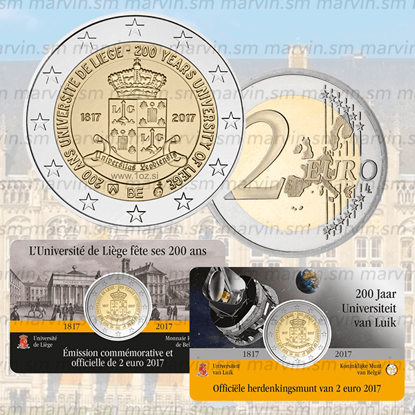 Moneta 2 euro dedicata ai dedicata al 200 ° anniversario dell'Università di Liegi, FDC.