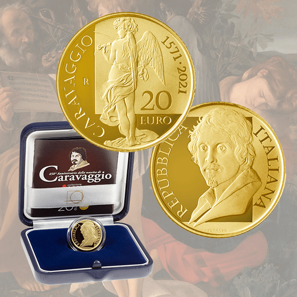 Moneta da 20 euro in Oro dedicato al 450° anniversario di Caravaggio, Fondo Specchio.