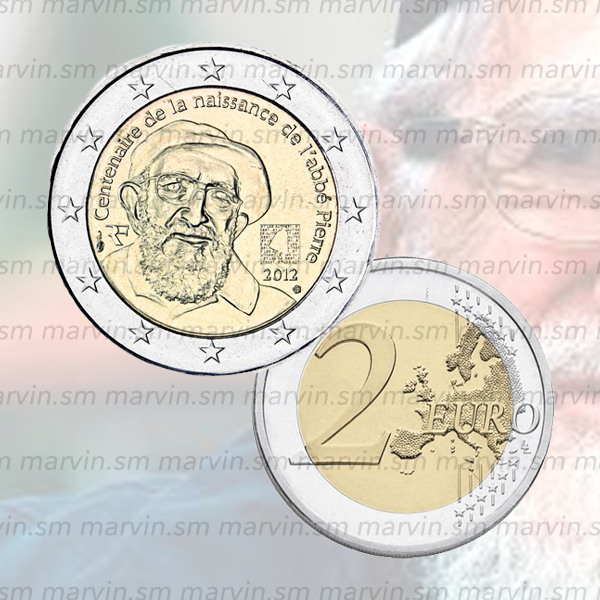 Moneta 2 euro dedicata al 100° anniversario dell'Abate Pierre.