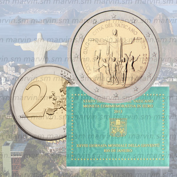 2 euro Moneta Commemorativa "Giornata Gioventù a Rio de Janeiro", fior di conio.