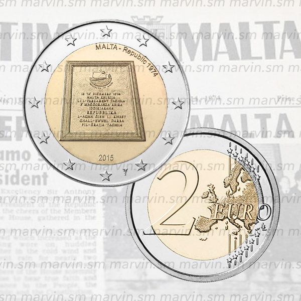 La moneta è l'ultima di una serie di cinque monete che celebrano altrettante tappe costituzionali fondamentali per il paese. Il 13 dicembre 1974 Malta fu proclamata repubblica a seguito delle modifiche costituzionali concordate da una larga maggioranza del parlamento. Il disegno riproduce la targa di marmo affissa sulla facciata del palazzo presidenziale di Valletta a ricordo del passaggio di Malta da monarchia a repubblica. In alto a destra figura, a semicerchio, l'iscrizione «MALTA – Republic 1974», in basso la data «2015».