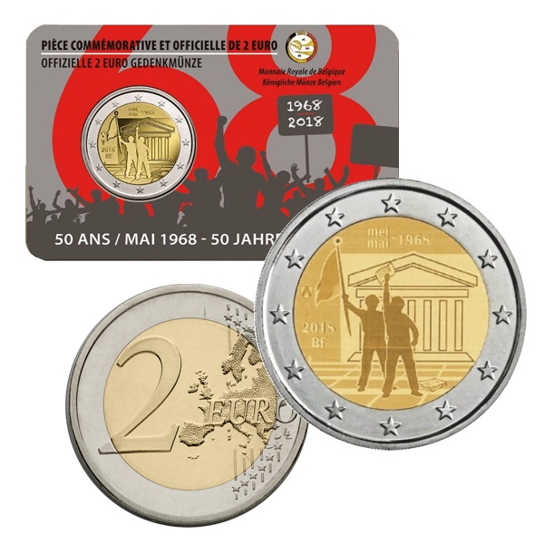 2 euro - Rivolta Maggio 1968 - Belgio - 2018 - Coincard - FDC