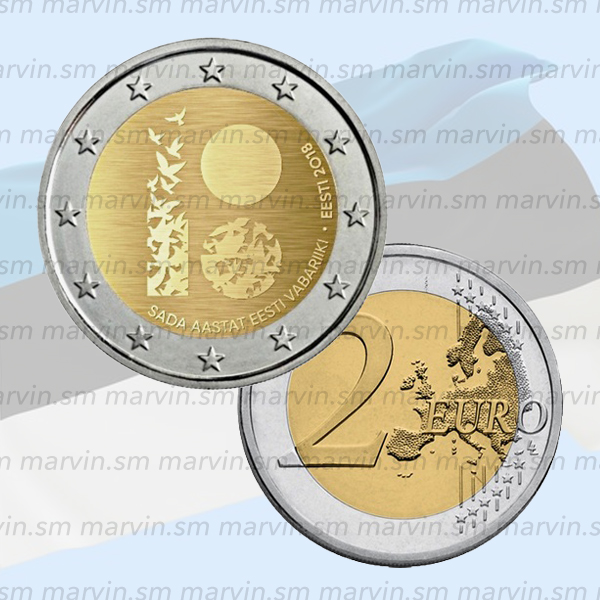 Moneta 2 euro dedicata al 100° anniversario della Repubblica d’Estonia, fior di conio.