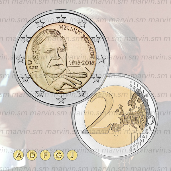Moneta 2 euro dedicata al 100° anniversario della nascita di Helmut Schmidt, UNC.