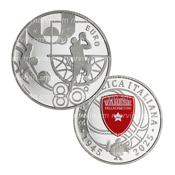 5 euro in Argento in Box dedicata all'80° anniversario della fondazione della Pallacanestro Varese, Fior di Conio.