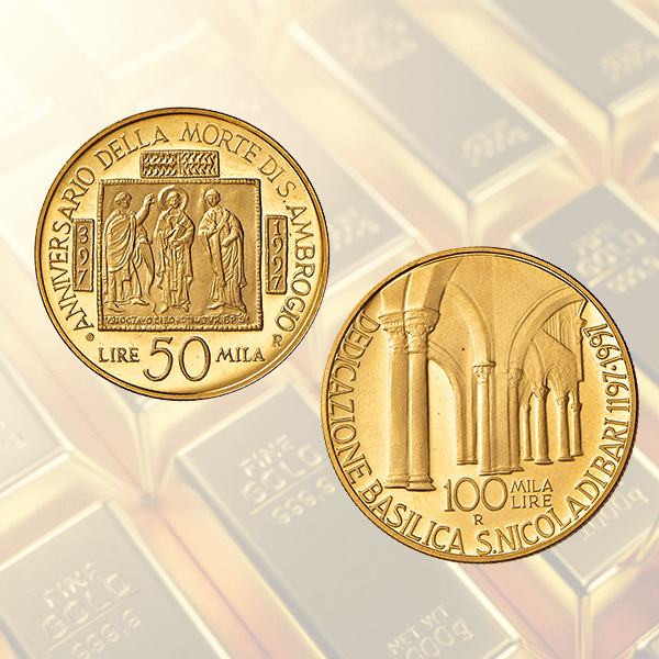 Vuoi avere altre info su Italia - L 50.000 S. Ambrogio + L 100.000 S. Nicola di Bari - 1997 - AU - FS ?