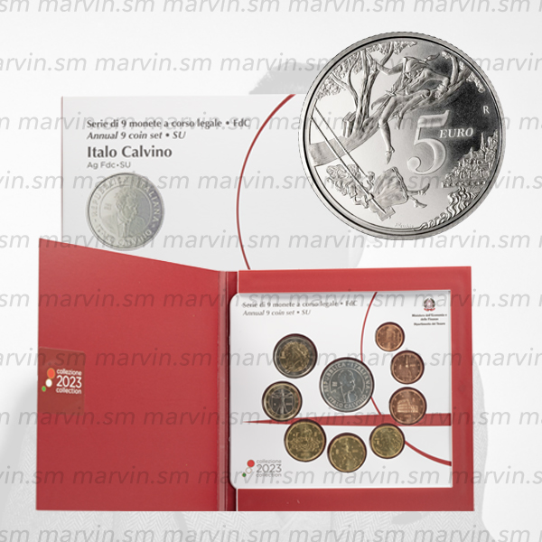 Serie euro con 5 euro AG - Italo Calvino - Italia - 2023 - 9 monete - FDC