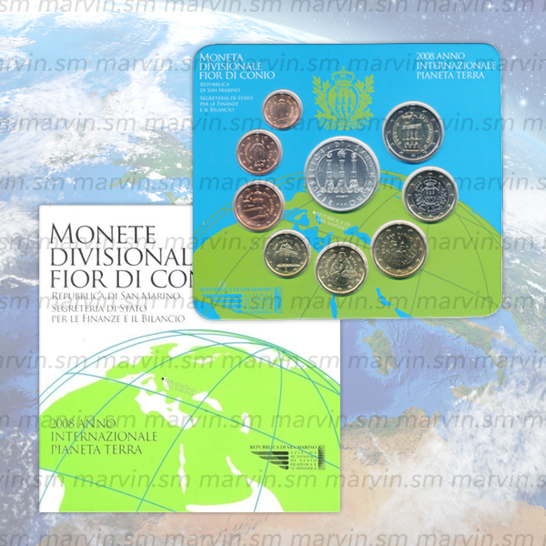 Da 1 centesimo a 2 euro + moneta di 5 Euro in argento che tratterà il tema “Anno Internazionale del pianeta terra”.