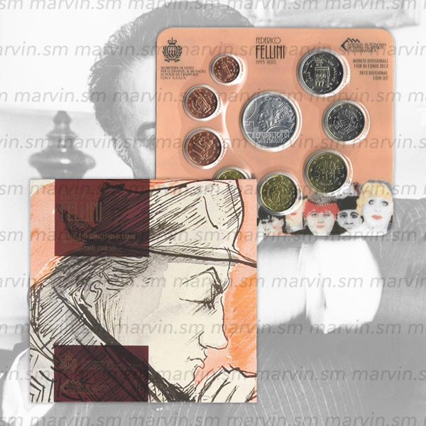 Serie divisionale fior di conio con 9 monete: da 1 centesimo a 2 euro + 5 euro Argento dedicati a "Federico Fellini".