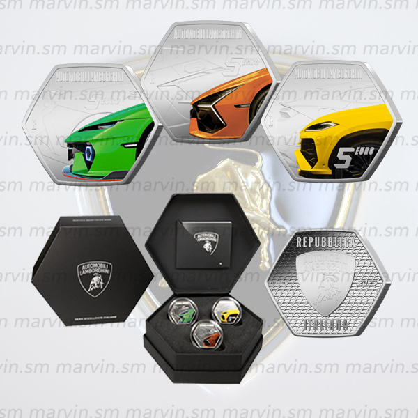 Automobili Lamborghini S.p.A. è un'azienda italiana produttrice di automobili, fondata il 7 maggio 1963 da Ferruccio Lamborghini, già fondatore della Lamborghini Trattori. La sede e l'unico stabilimento produttivo sono da sempre situati a Sant'Agata Bolognese. Le monete celebrano i modelli più recenti Temerario, Urus e Revuelto, con una composizione che ne esalta gli inconfondibili dettagli di design, aerodinamica e colore.